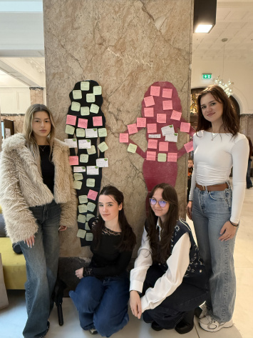Students Kalina, Ruxanda, Lena, and Dóra explored the issue of harassment in the city, creating space for women to share their experiences and coping strategies. On campus, they displayed two life-sized figures: one representing a silenced woman, unable to speak out against harassment, and another representing an empowered woman who can express herself and navigate these challenges. Students were invited to write down experiences or coping strategies and place them on the figures, creating a visual representation of both vulnerability and resilience. The team also conducted video interviews to capture how harassment affects daily life and shapes a sense of security, bringing an often-invisible issue into clear view.